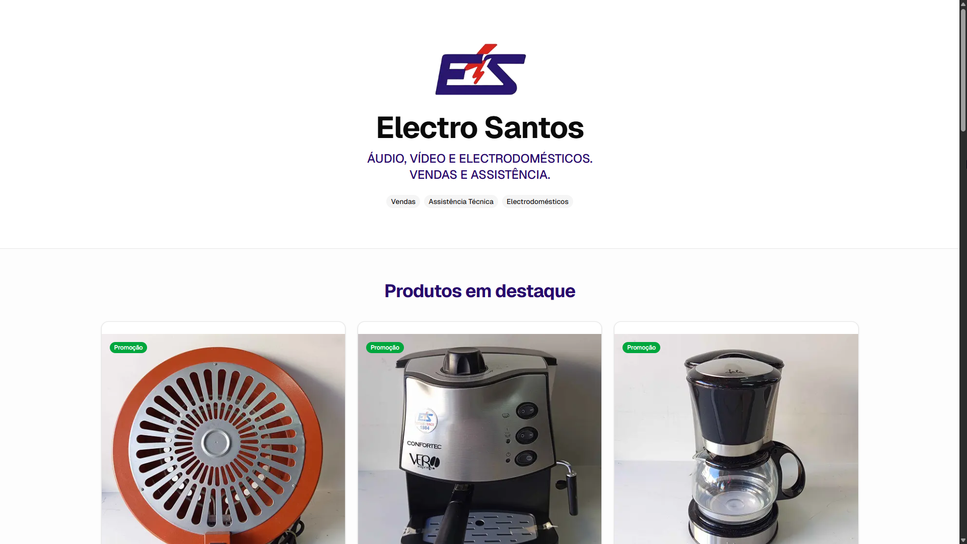 Website for a local appliance store.